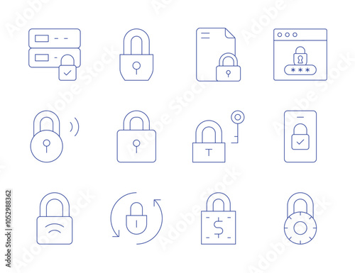 Lock icons. Thin Line style, editable stroke. lock, locked, money, padlock, refresh, server, smart lock