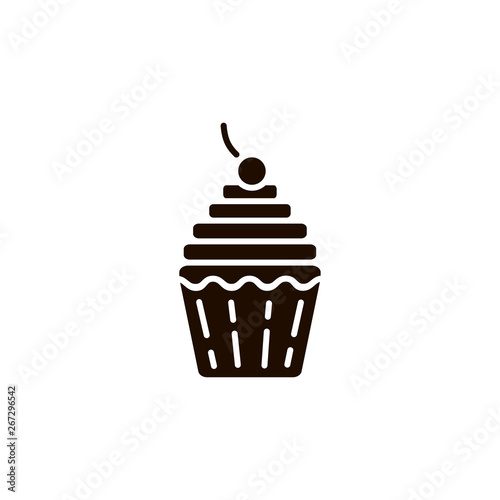 Logo cupcake with cherry on white isolated background. Vector illustration for banner, flyer or print. For bakery shop or cafe