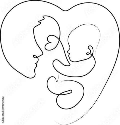 logo of a woman with a newborn baby in a heart in an abstract style, line art