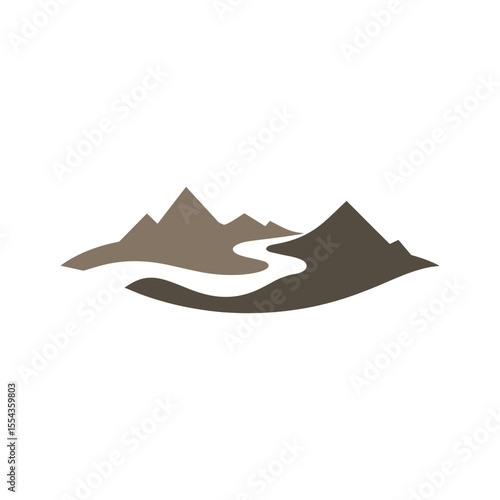 Logos of rivers, creeks, riverbanks and streams. River logo with combination of mountains and farmland with concept design vector illustration template
