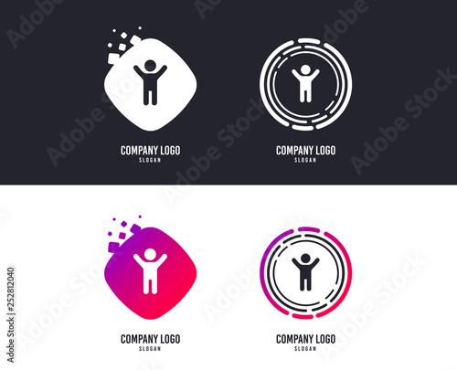 Logotype concept. Child icon. Happy young boy symbol. Person silhouette. Logo design. Colorful buttons with icons. Vector