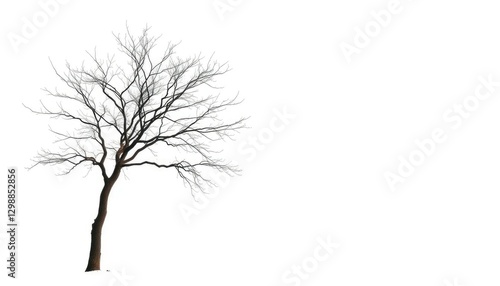 Lone deciduous tree, stark branches against pure white, summer, winter