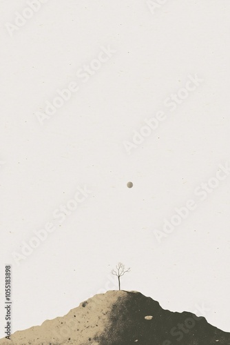 Lonely Tree on a Desolate Mountain: A Minimalist Landscape