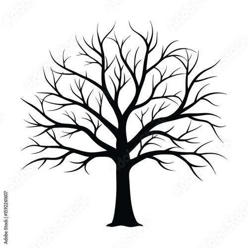 Lonely Winter Tree With Bare Branches In Cold Season Line Art Vector illustration