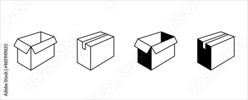 Long carton box icon set. Cardboard box vector icons set. Opened and closed carton box. Assorted delivery packaging, symbol of shipping transportation. Simple isometric flat line illustration.