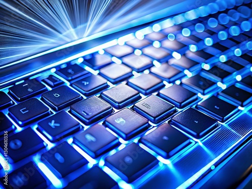 Long Exposure Photo of Laptop Keyboard with Glowing Training Button