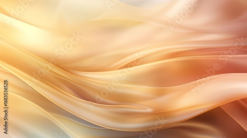 Long, flowing piece of fabric with a warm, golden hue. The fabric appears to be draped over a surface, possibly a table or a wall. Scene is serene and elegant, with the fabric's texture