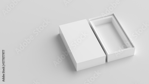 Long open box packaging mockup on white background. Template for your design. 3d illustration