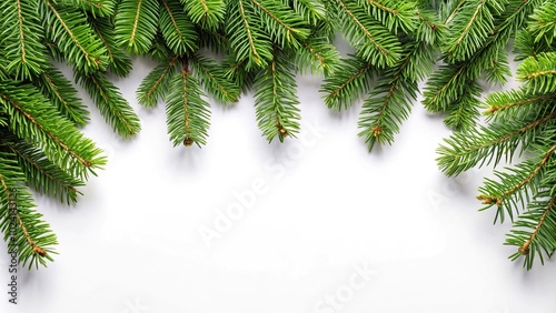 Long shot of holiday fir branches decorated Christmas background with fir decorations