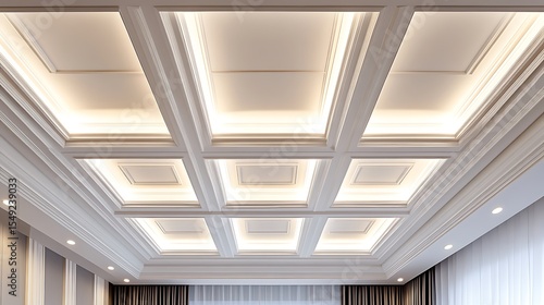 Looking Up at Coffered Ceiling with Recessed Lighting