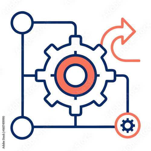 Loop Process Diagram with Gear – Workflow Cycle Line Icon