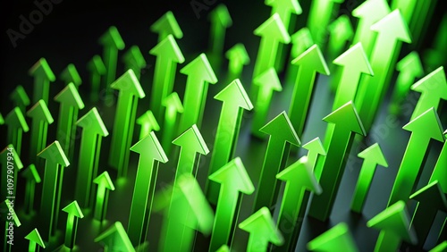 Looping Upward Green Arrows Against a Sleek Black Background in Tilt-Shift Style Animation Creating a Dynamic Visual Experience of Ascending Growth and Progression