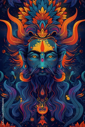Lord shiva, indian god depicted through vibrant colors and intricate patterns. Spiritual art for hindu worship celebration.