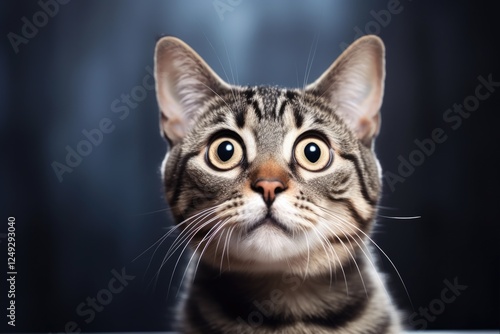 Lost in Thought: Closeup of Skeptical, Wide-eyed Tabby Cat Pondering the Unknown with a Funny Expression. Banner-worthy Pet Portrait