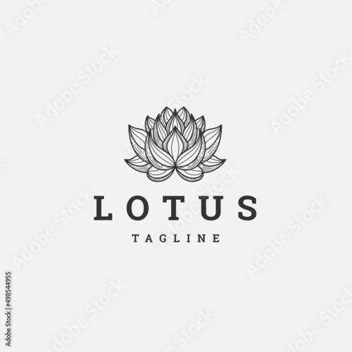 Lotus flower line logo icon design template flat vector