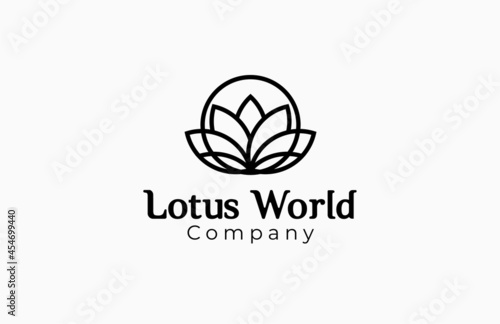 Lotus logo. lotus and globe with Line art design template element