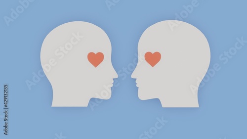 Love and heart concept. Two people fall in love. Illustration with white, red and blue colours