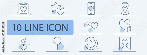 Love and social media set icon. Love checklist, favorite, mobile romance, location, gallery, music, award, gender, heart cycle, bookmark.