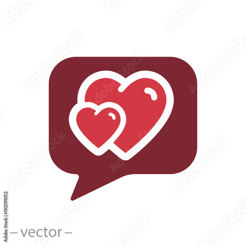 love message dialog icon, speech bubble with hearts, lovers, concept of valentines day, flat web symbol, vector illustration