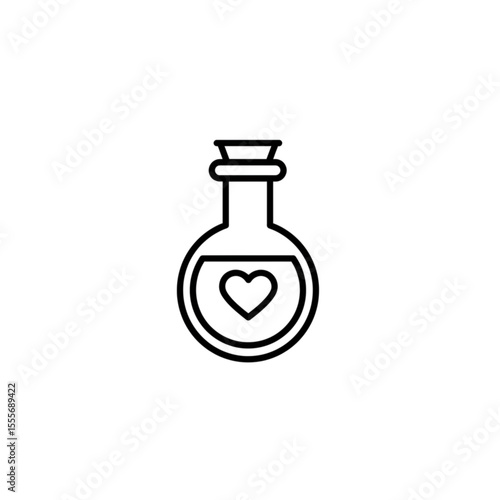 Love potion flask with heart symbol in minimalist outline style