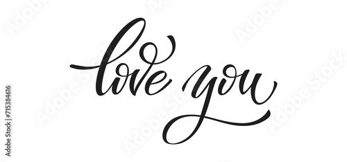 Love you lettering. Hand drawn word Love you. Modern calligraphy script love text. Design for wedding invitations, greeting cards, flyers. Vector illustration.