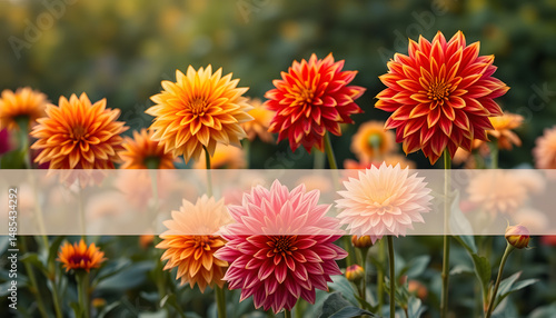 Lovely fall dahlia blossoms - Scenic view, backdrop, header, vintage. with white shades