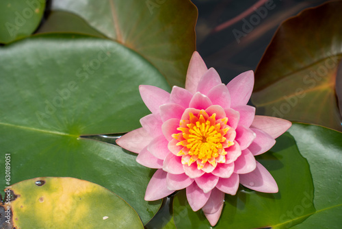 Lovely flowers. commonly called water lily or water lily among green leaves and blue water. beautiful Lotus flowers