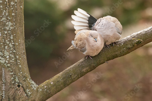 Lovely turtledove. Love birds on the branch.