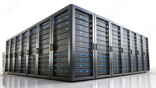 Low Light Server Room Photography: Data Center Infrastructure, High-Tech Network, IT Technology