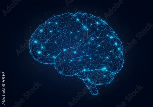 Low Poly Digital Brain Illustration – Neural Network and AI Concept, Abstract vector image of a human Brine