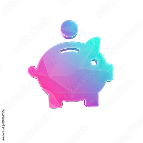 Low Poly Piggy Bank Savings Icon Neon Gradient Pink Blue Background Transparent Illustration for Finance Website Mobile App Design
