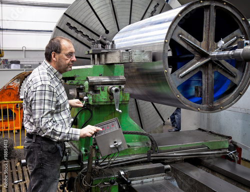Älterer Arbeiter der Metallindustrie an CNC Fräsmaschine.