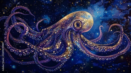 Luminescent Cephalopod Adrift in a Cosmic Seascape
