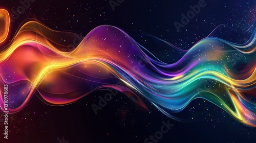 Luminous Abstract Wave Pattern with Dynamic Color Gradients and Sparkling Dust on Dark Backdrop