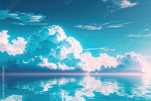 Luminous Aqua Cloud Background with Bright Water Reflection for Vibrant and Serene Design