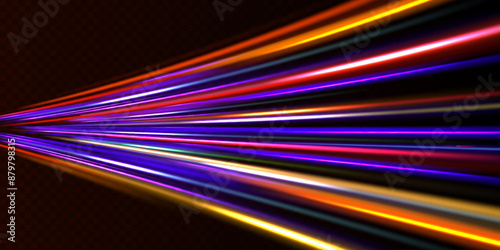 Luminous bright background. High speed effect motion blur night lights blue and red. Cyberpunk light trails in motion or light slow shutter effect.