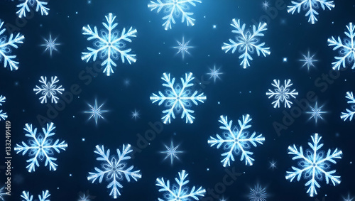 Luminous Christmas Stars and Frosty Snowflakes: A Seamless Tile Pattern for Festive Decor with Bright Winter Elements and Space for Customization
