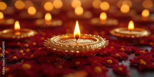 Luminous Diwali: Golden Diyas Illuminate Festive Spirit