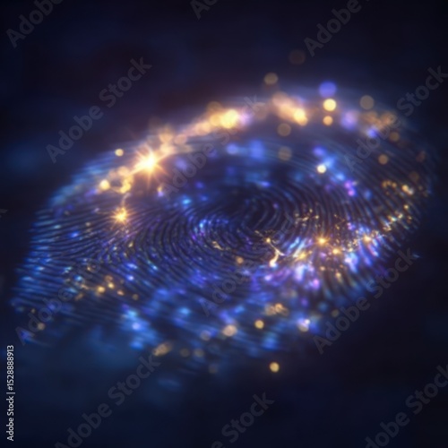 Luminous Fingerprint Biometric Security Abstract Art Blue Gold Technology
