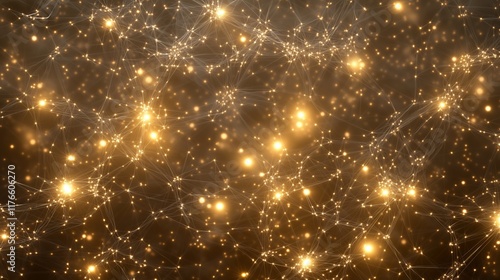 Luminous golden network connection with sparkling dots background. Based on Generative AI