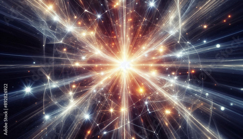 Luminous lines and shapes converging in a celestial-inspired composition, reminiscent of a starry night sky, ideal for creating a dreamy and magical ambiance