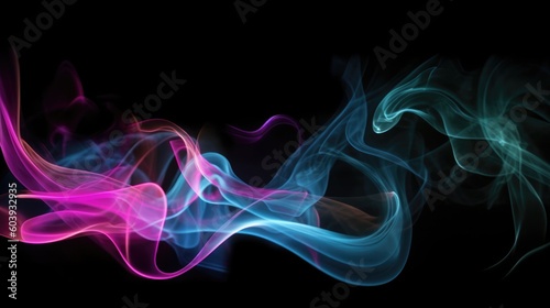 Luminous Neon Smoke Enveloping a Stark Black Backdrop: An Ideal Space for Text or Graphic Additions, Designed in a Contemporary 16:9 Screen Proportion - Generative AI Illustration