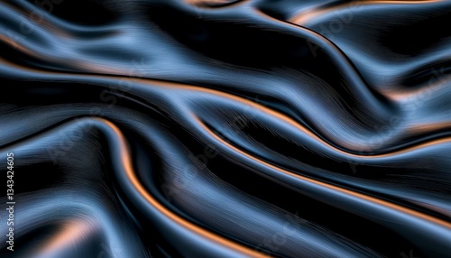 Luminous Obsidian Waves Abstract Digital Rendering of Dark Fabric with Subtle Color Reflections
