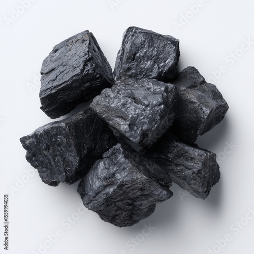 Lumps of Coal: A collection of rough, dark-colored coal, artfully arranged to highlight their natural texture and geological origins.