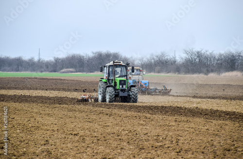 Lush and loosen the soil on the field before sowing. The tractor plows a field with a plow