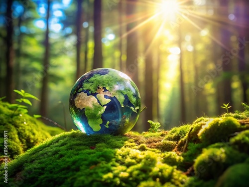 Lush Forest Globe: Mossy Globe on Forest Floor, Natural Colors, Generative AI Design