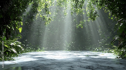 Lush Forest Sunlight Path Tranquil Nature Scene