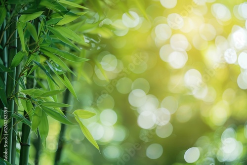 Lush green bamboo leaves bathed in sunlight, creating a serene and peaceful natural scene.