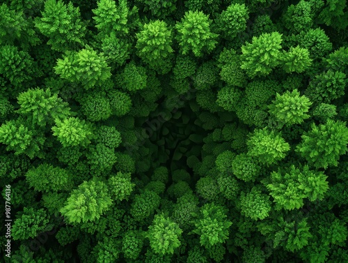 Lush green canopy of trees in a quiet forest, small wildlife moving through the underbrush, nature serenity