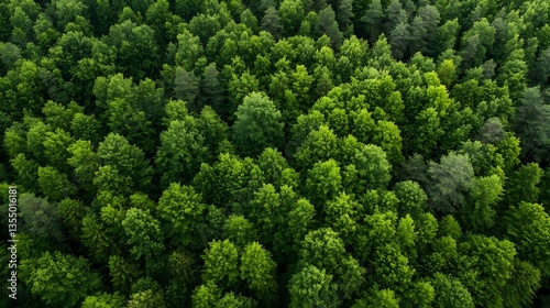 Lush green canopy of trees viewed from above representing the beauty and richness of untouched nature : Generative AI